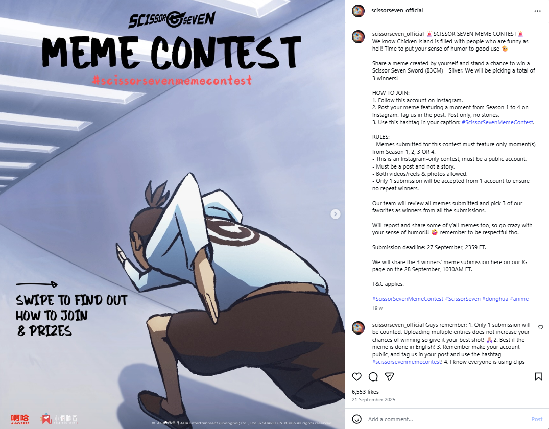 Before Season 5 launched, Scissor Seven’s official account initiated a cross-platform meme contest